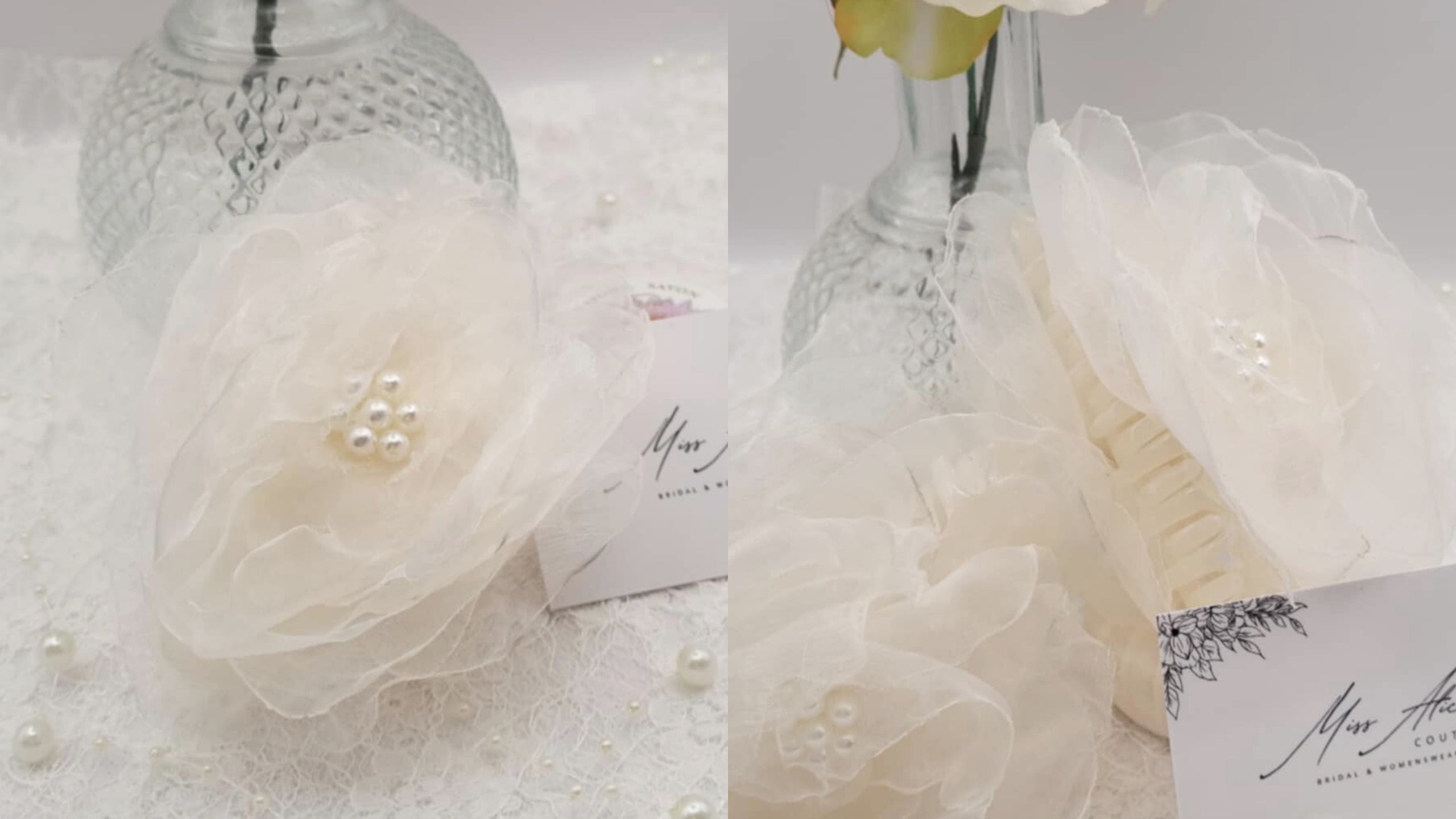 A sweet ivory organza claw clip. soft, airy, and full of charm! Perfect for adding a gentle, elegant touch to any hairstyle.
