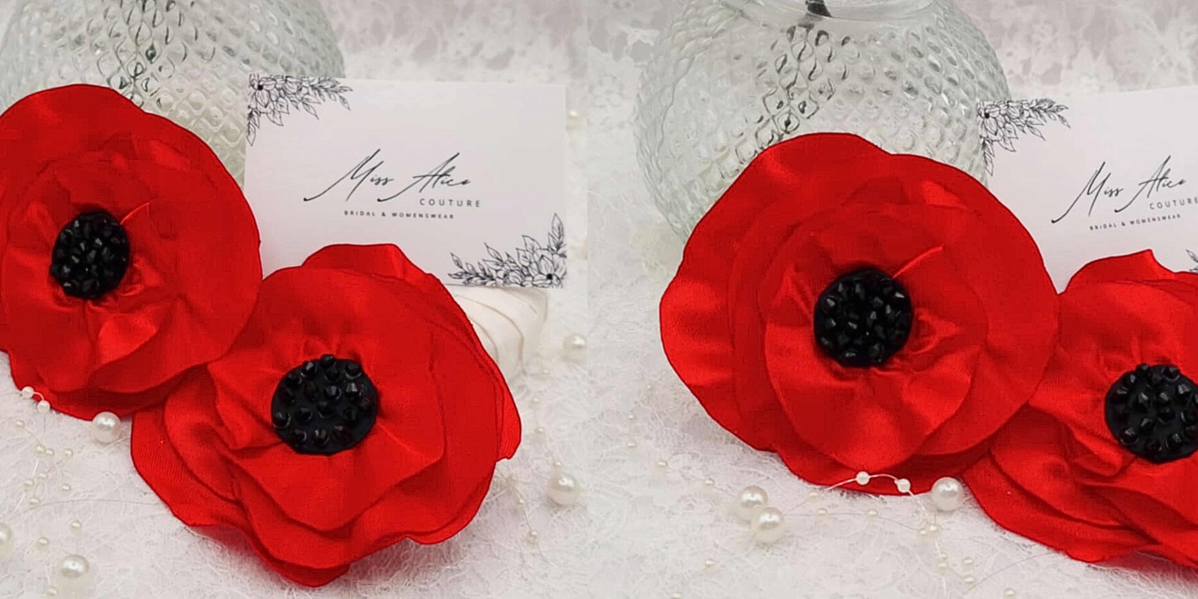 The Poppy Brooch is a handcrafted red satin piece symbolising love, honour, and remembrance, a timeless tribute that adds elegant beauty to any outfit.